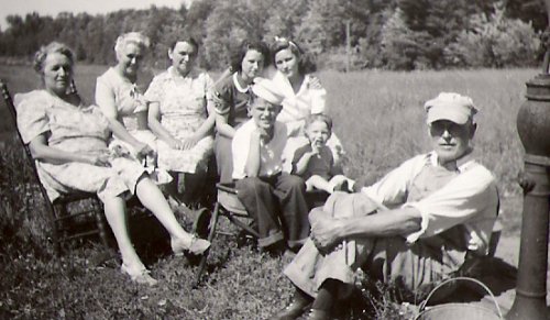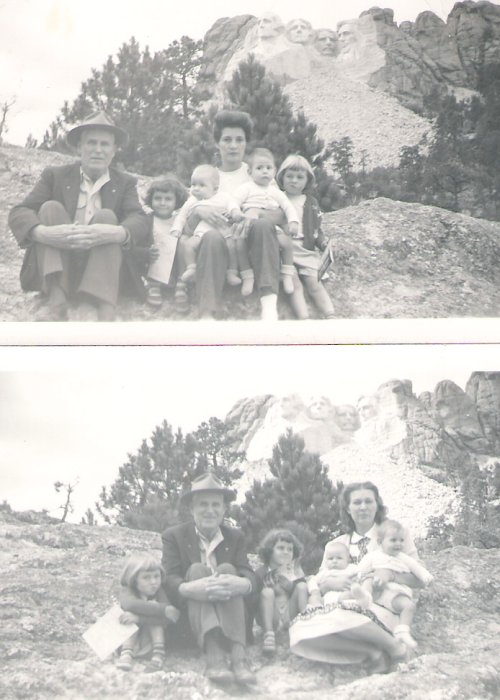 The next 2 pictures are of Peter in the 1950s. He took a trip from Wisconsin to South Dakota to visit Richard & Vi and there family. After World War II Richard moved with his new English 'war bride' to Rapid City South Dakota. The first picture is with Violet, her two daughters and her sister's two children. The second picture is of Vi's sister Margaret and the same four children. Vi's sister 'Aunt Marg' and her husband Len moved from England to be near Marg's sister Vi.